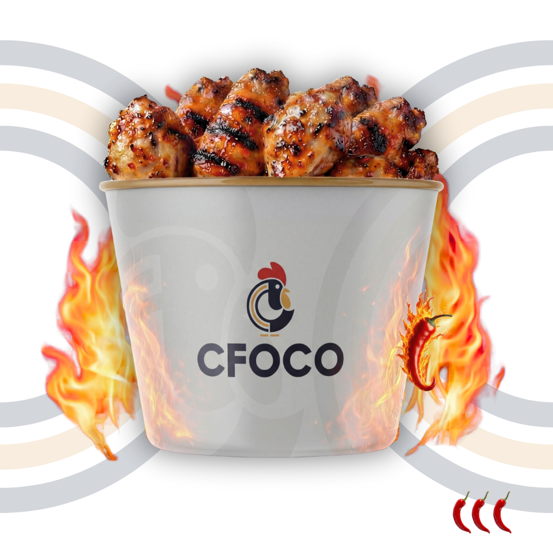 6 cuisses de poulet + 15 ailes épicées + 3 frites + boisson 1,25l